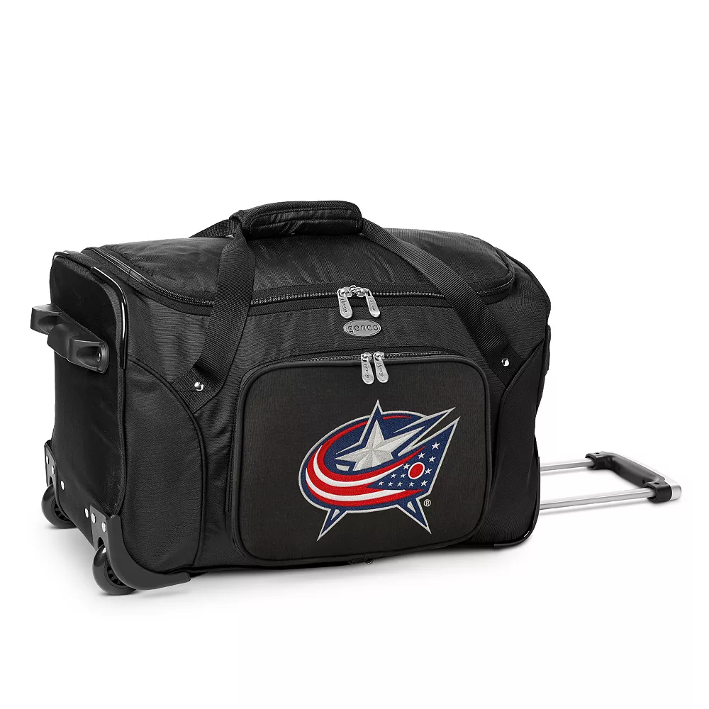 Travel like a champ with this spacious and portable team wheeled duffel bag from Denco.