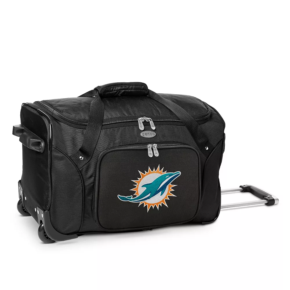 Travel like a champ with this spacious and portable Miami Dolphins wheeled duffel bag from Denco.