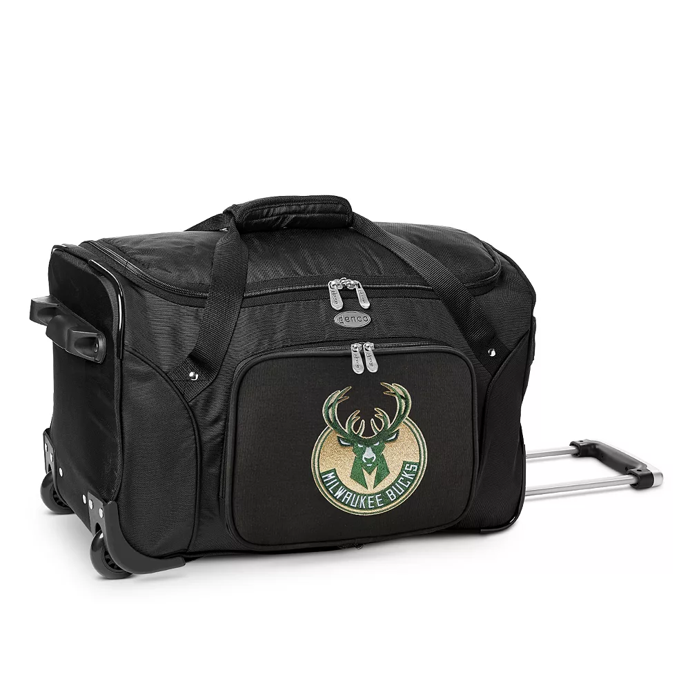 Travel like a champ with this spacious and portable Milwaukee Bucks wheeled duffel bag from Denco.