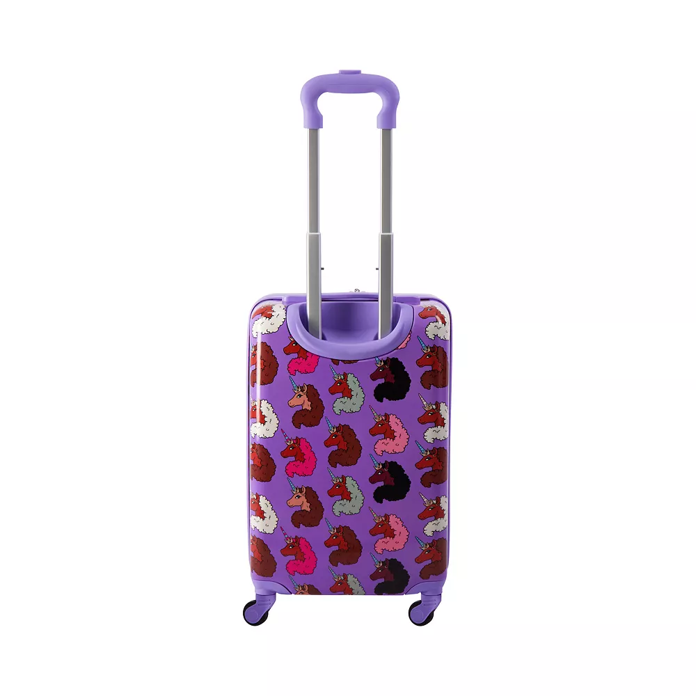 Travel to your favorite places with ful Afro Unicorn 3-piece 21-inch carry-on hardside spinner luggage, neck pillow and eye mask set.