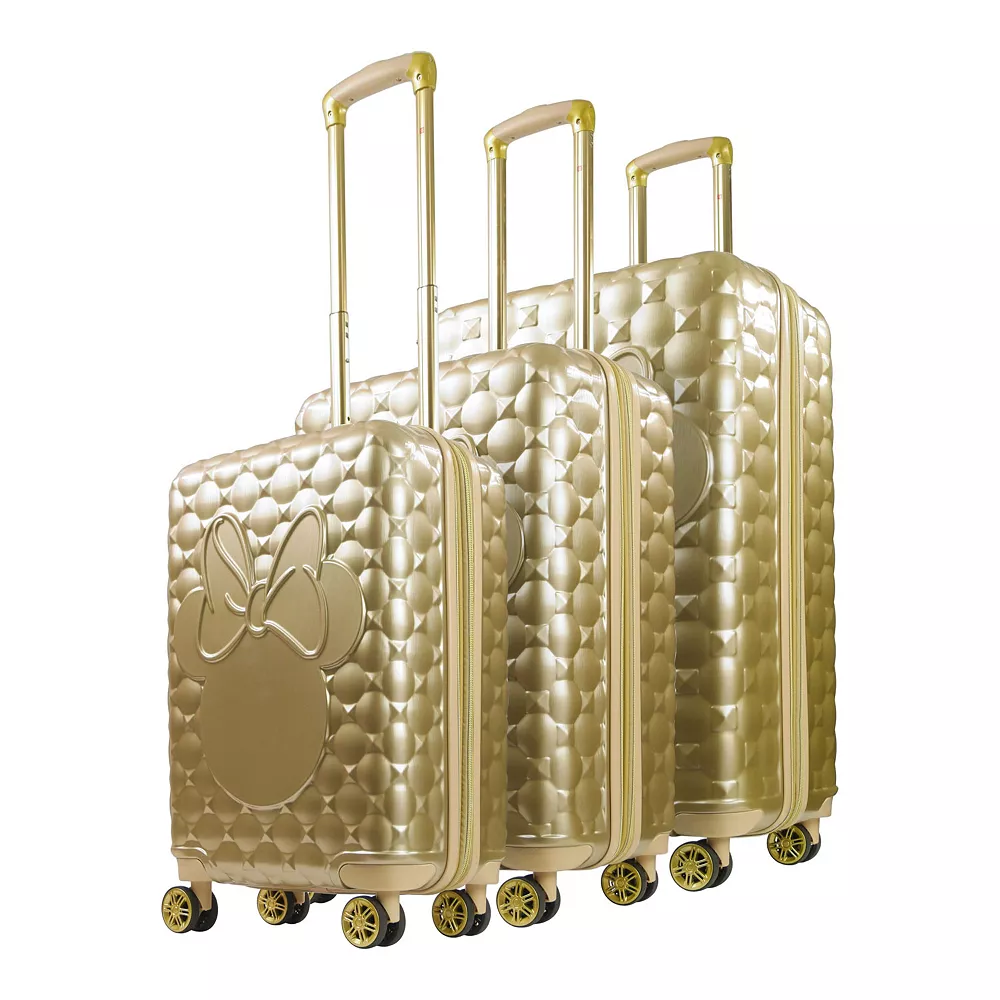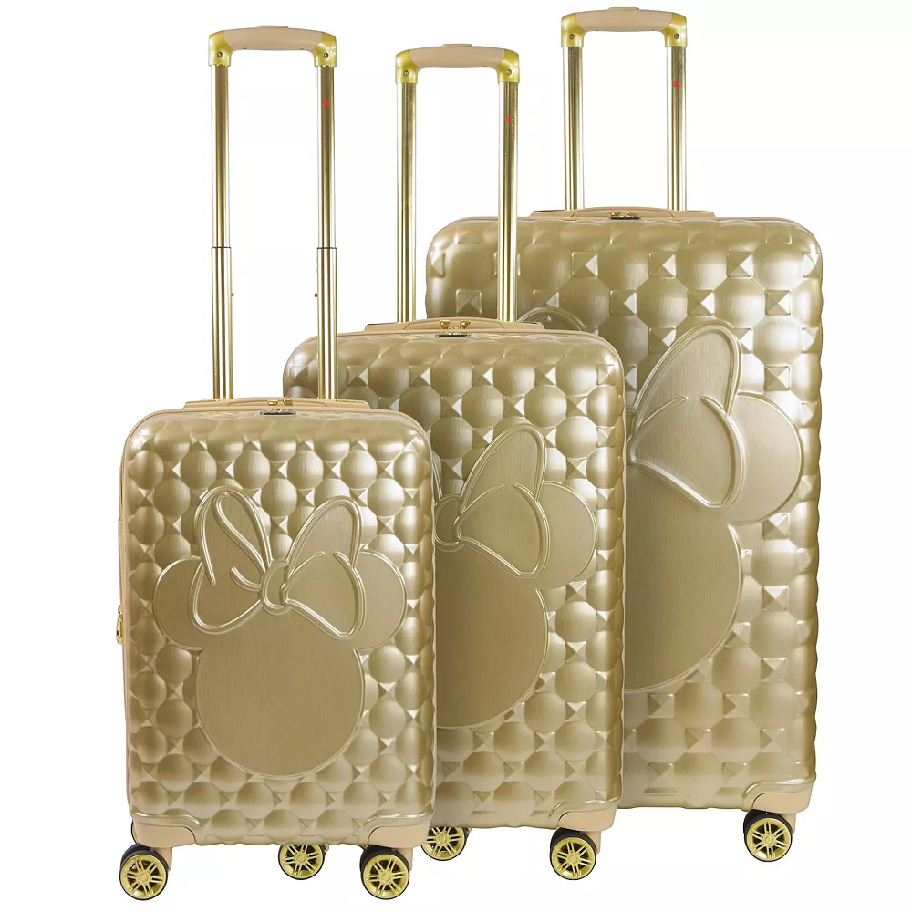 Jet set in style with this ful Disney’s Minnie Mouse Quilted 3D Molded 3-piece hardside spinner luggage set.