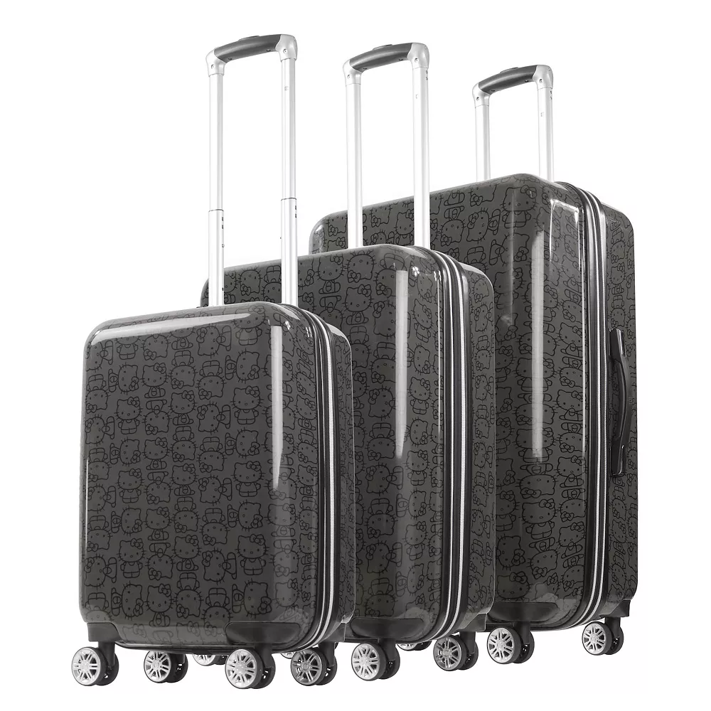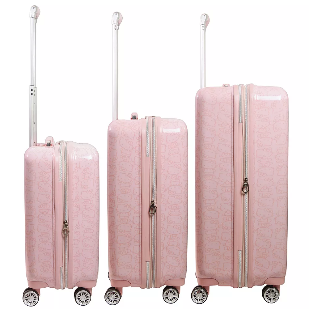 Jet set in style with this ful Hello Kitty Pose All Over Print 3-piece hardside spinner luggage set.