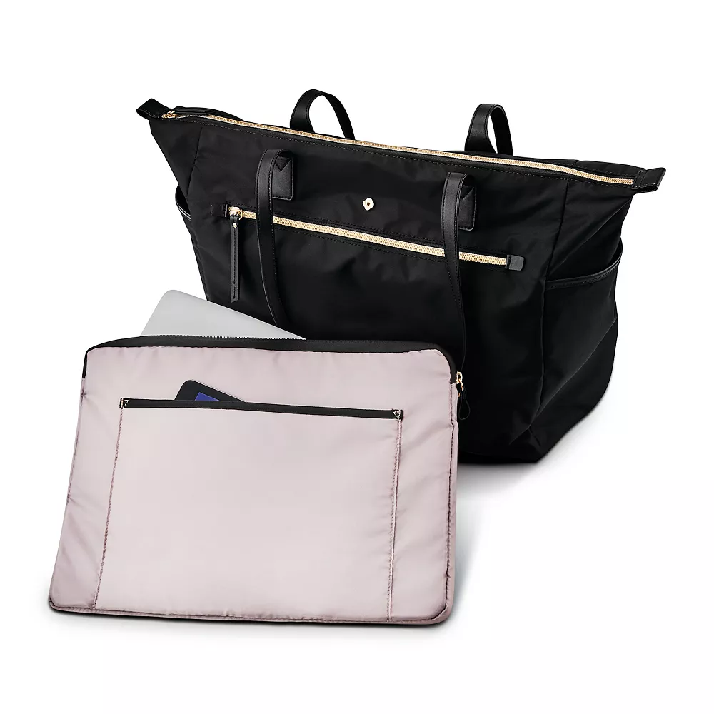 - Removable Padded Laptop Sleeve: fits most laptops up to 15.6-in. with front slip pocket for tablet storage