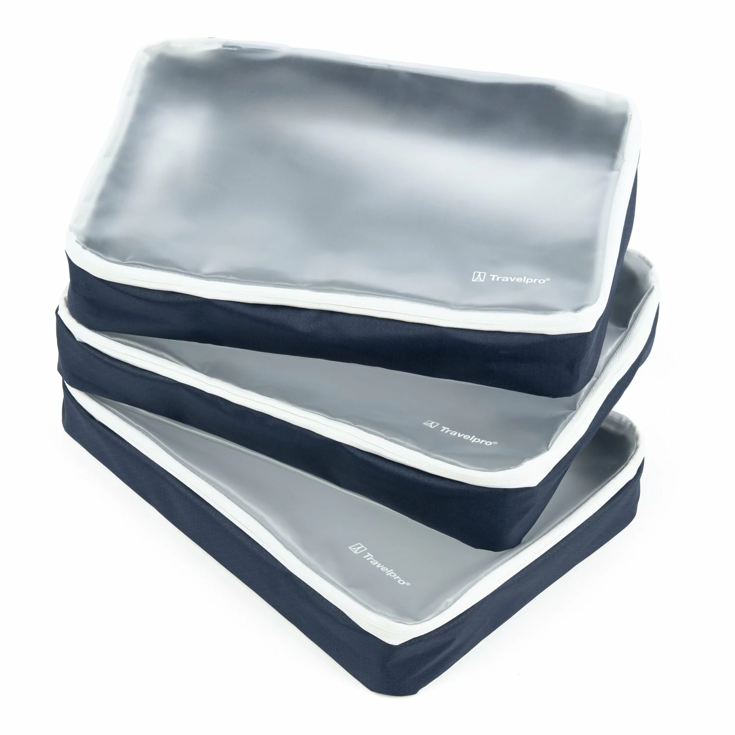 Keep packed contents separated, organized and protected from departure through return. This 3 Pack of TravelproĀ® Roadtrip Large Water-Resistant Packing Cubes is designed to coordinate perfectly with the Roadtrip 30ā Drop-Bottom Rolling Duffel and can be used individually or as a set in a spinner or RollaboardĀ® as well. Durably constructed for lasting use, each of these Large Packing Cubes features a water-resistant liner that wipes down easily and keeps damp or soiled items, like gym clothes, bathing suits and laundry, separate from the rest of your bagās packed contents.