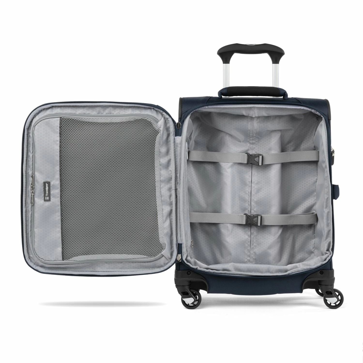 Two exterior compartments, full-length interior lid pocket, side accessory pocket and adjustable interior hold-down straps keep you organized, while the high-tensile-strength expandable zipper maximizes packing space up to two additional inches. Backed by our Travelpro® Built For A Lifetime Limited Warranty.