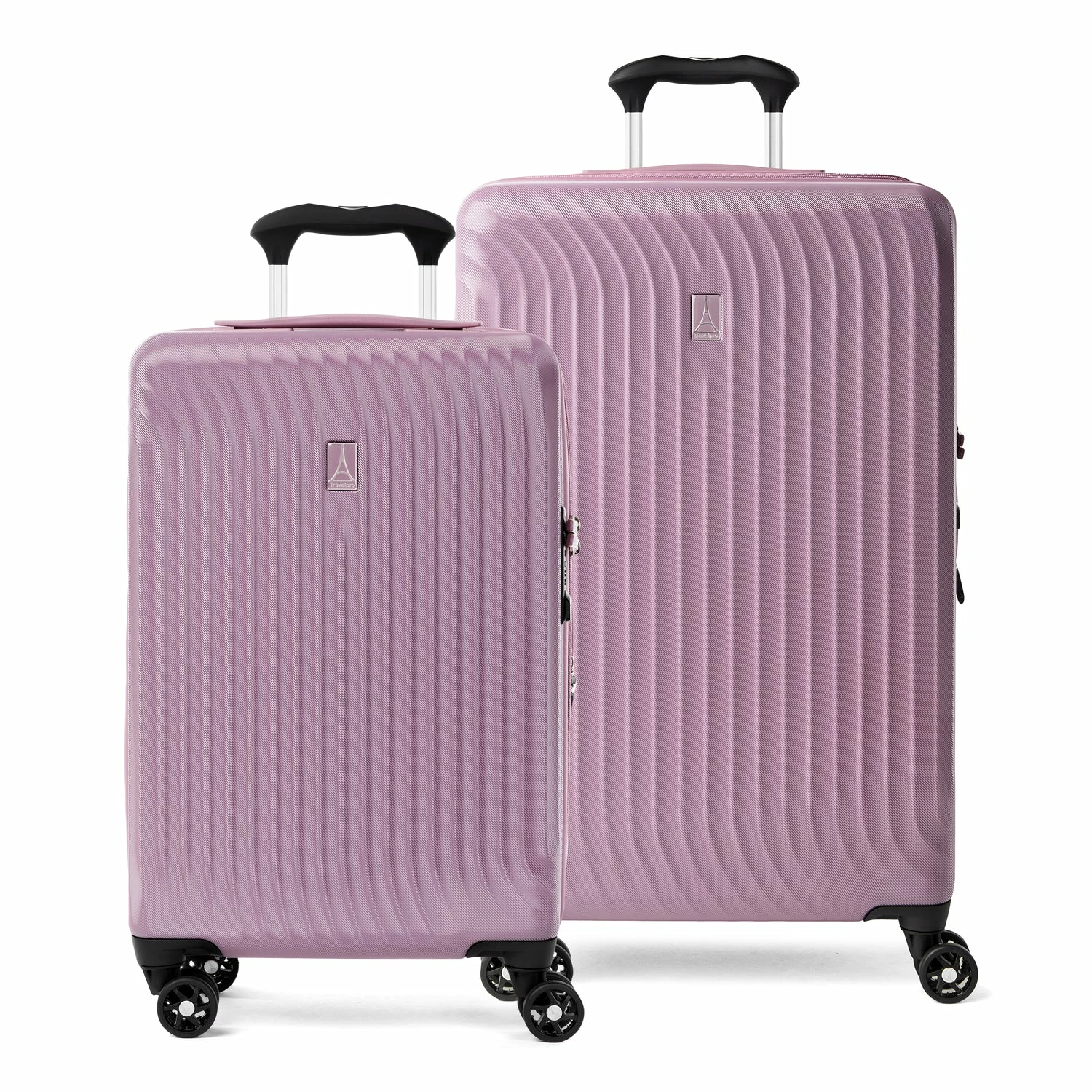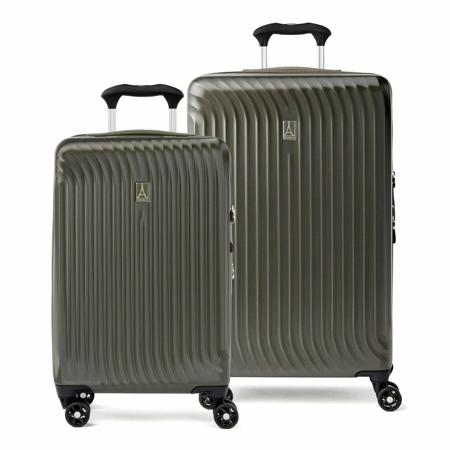 The perfect hardside duo. The lightweight, super durable Maxlite® Air Carry-on and Medium Check-in Expandable Hardside Spinner set gives you all the benefits of hard sided luggage in a resilient, well-equipped suitcase set, perfectly sized for medium and longer trips. The 100% polycarbonate exterior is engineered to flex on impact to prevent splitting, cracking or punctures, while a stylish exterior finish reduces visible scratches or scuffs. A built-in lock allows TSA authorities to safely unlock and relock the bag for inspection when needed, and a zippered expansion option maximizes packing capacity when needed.