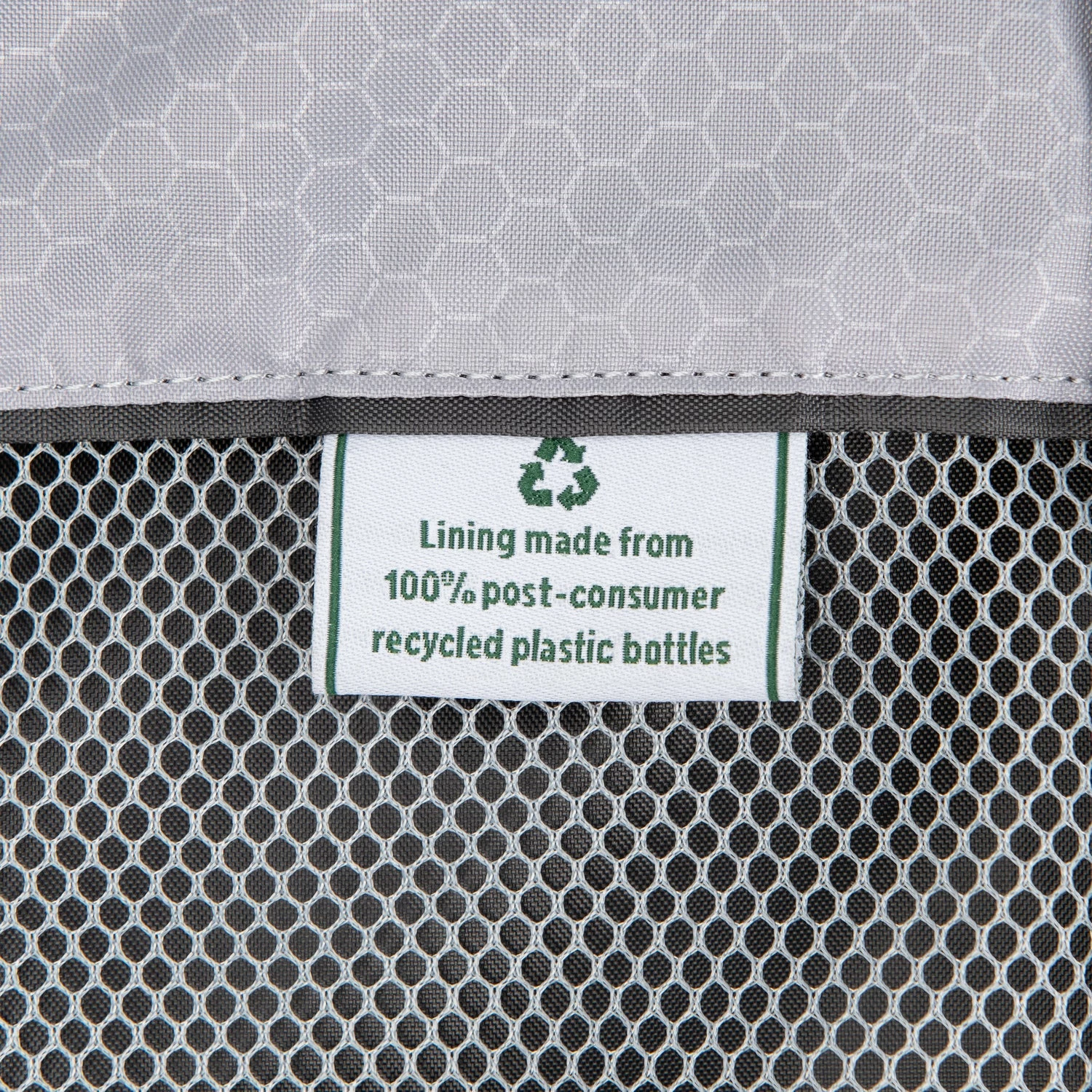 Made to resist water and stains inside and out, the ECOFAB™ interior lining of this garment bag is made from 100% post-consumer recycled plastic bottles to help reduce environmental waste. On the move, high-performance ball bearing wheels provide a smooth roll over most any terrain led by a lightweight PowerScope Lite handle that adjusts for comfort to users of different heights.