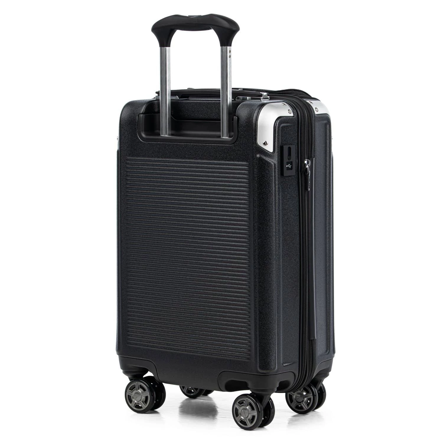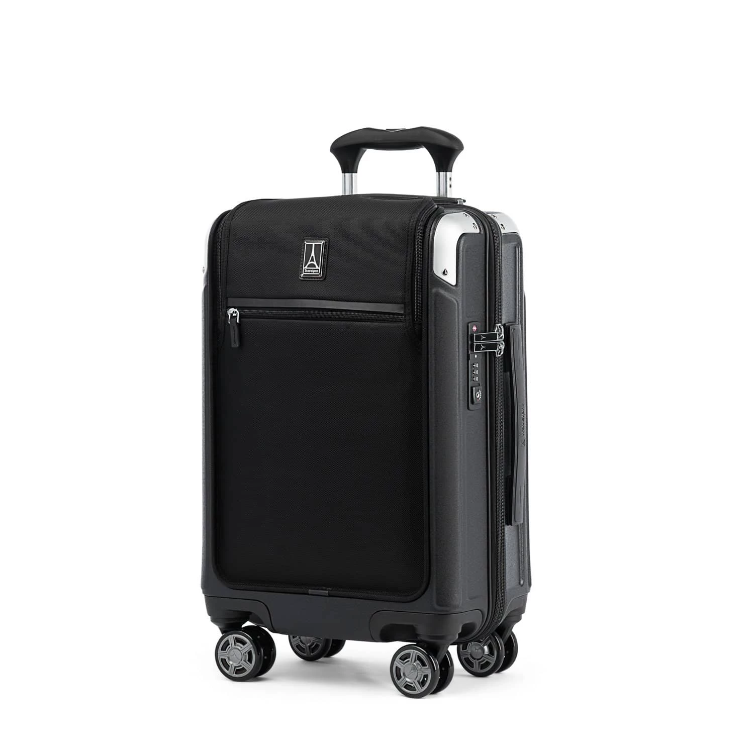 Hit the ground running with precise control and effortless roll, thanks to the Travelpro® exclusive PrecisionGlide™ System–eight MagnaTrac® self-aligning spinner wheels led by a sturdy, four-stop adjustable PowerScope Lite handle with comfortable Contour Grip.