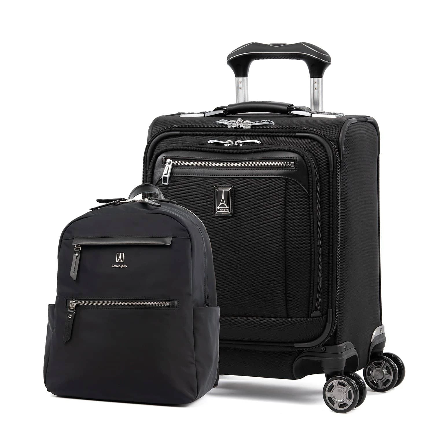 Master mobility with the iconic Platinum® Elite Women’s Backpack and coordinating Platinum® Elite Carry-On Spinner Tote. Slim in design and big on capacity, the durable women’s backpack features padded laptop and tablets sleeves, numerous interior organizing pockets, exterior pockets, including a Travelpro® QuickSlip™ pocket ideal for a cell phone, keys or other essentials and a rear strap for secure stacking atop the spinner tote.