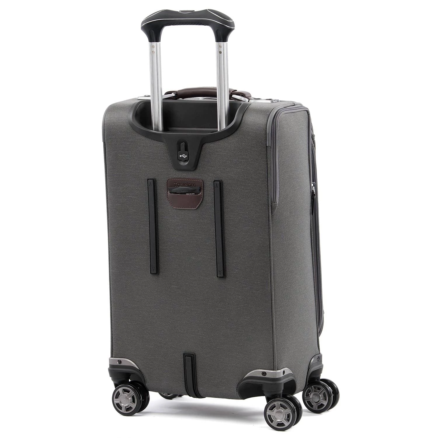 The Platinum® Elite 21” spinner delivers big on form and function with a tip-resistant expansion option, integrated accessory pockets, TSA-compliant removable quart-size wet pocket that is perfect for toiletries and a drop-in fold-out suiter that helps prevent wrinkles. The built-in USB port lets you power electronics on the go, while the dedicated backup battery pocket adheres to FAA regulations. For precise control and effortless roll, the PrecisionGlide™ system delivers on eight MagnaTrac™ wheels led by a PowerScope handle with comfortable Contour Grip. Both bags are backed by our Built for a Lifetime Limited Worry Free Warranty.
